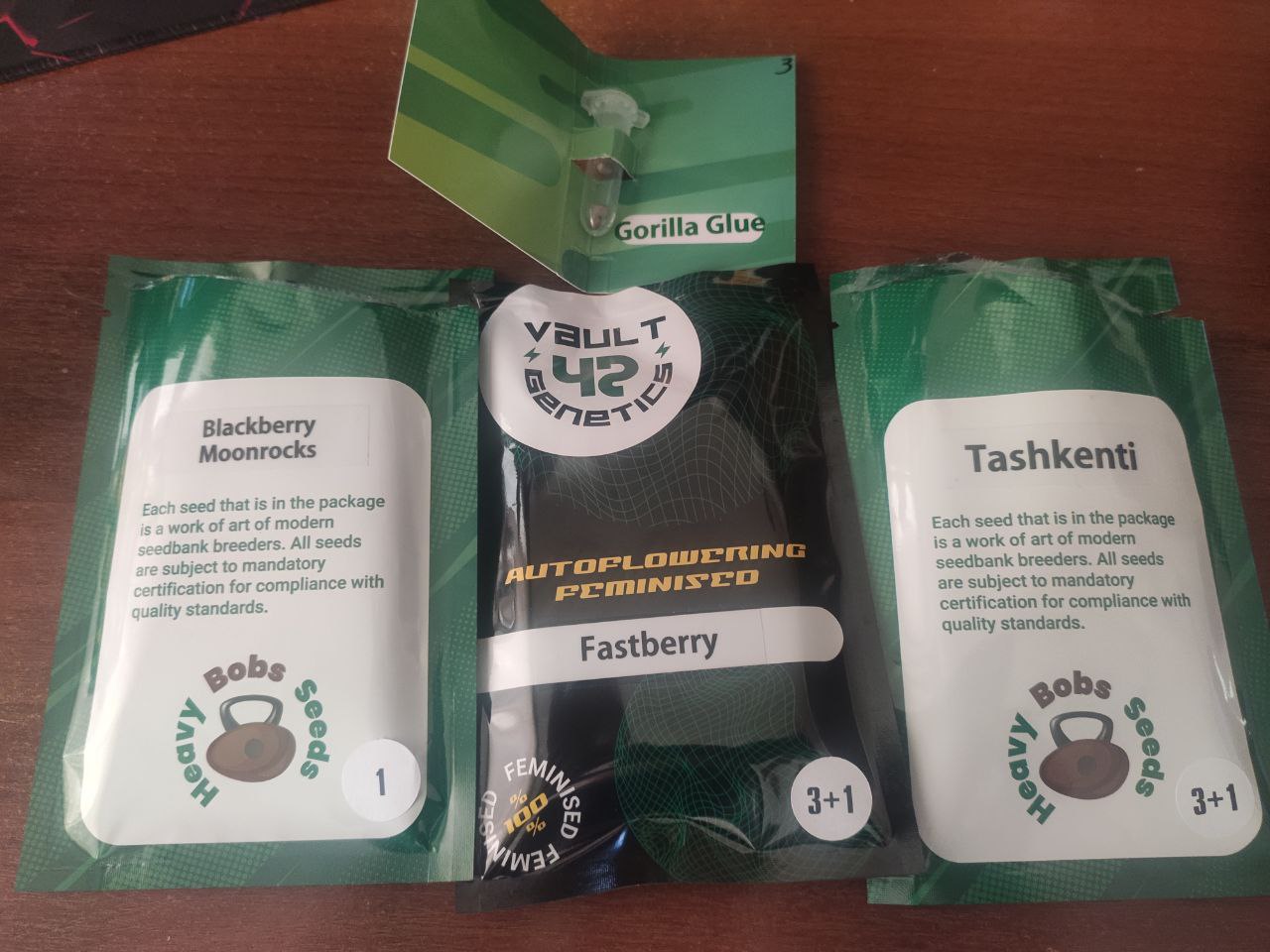Всхожесть 100%! Заказывал Fastberry Auto Fem, Blackberry Moonrocks Fem + бонусом получил Ташкенку и Горилла Глю фото. Без всяких танцев с бубном, ватными дисками и замачиванием, воткнул просто в торфяные таблетки. Через сутки первыми проклюнулись 2 Горрилы Глю (казалось бы невзрачная упаковка, но визуально семена изначально вызвали доверие) следом на вторые проклюнулись остальные (пришлось немного помочь зубочисткой, слишком глубоко воткнул) По факту имею 6 автиков и 2 фотика для аута и Мунрок для индора.