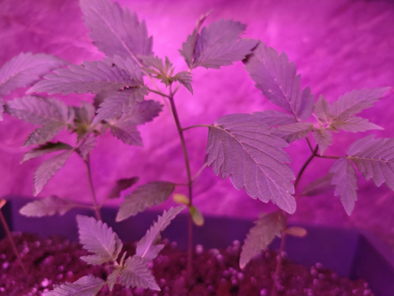 С нетерпением жду полной прорастания — пока только положительные эмоции. Необходим хороший свет с полным спектром, вентиляторы для циркуляции воздуха, желательно ионизирующие фильтры для устранения запаха. Температура в помещении – 26,5°C, влажность – 60%. Упаковка выглядит прекрасно, в качестве бонуса получили много семян. Растения быстро развиваются, приятно пахнут, и стебли у них крепкие.