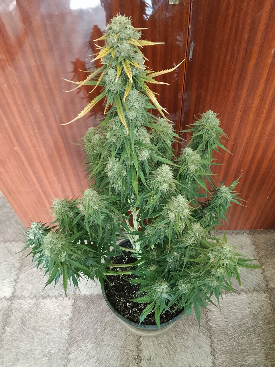 Очень позитивное растение. Было легко растить. Я попытался делать фимминг, но это не удалось, и она выросла нормальной с одним основным стеблем. Цветки сплошь покрыты трихомами. Хороший расслабляющий кайф. Не слишком головокружительный. Больше склоняется к индике.